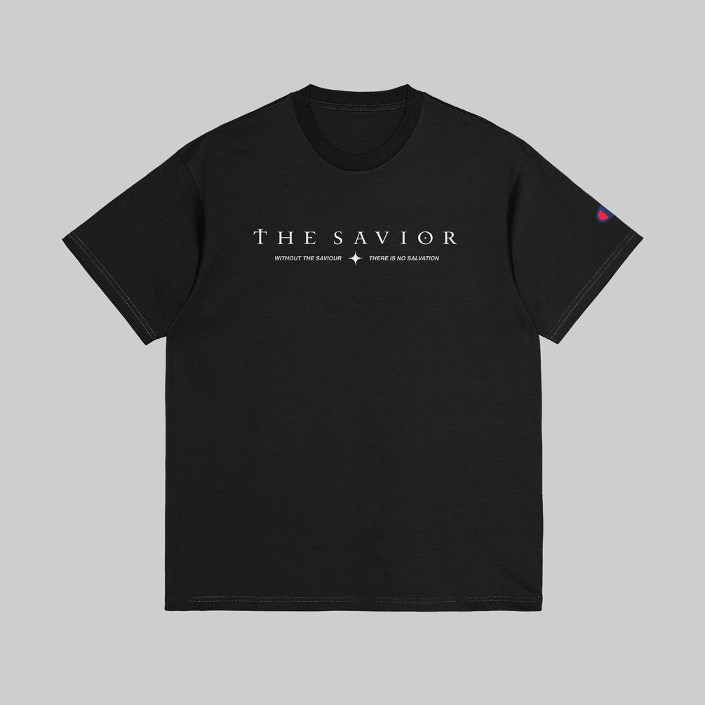 "Elevated Presentation for Your Streetwear Brand: SAVIOR Black T-Shirt Mockup"